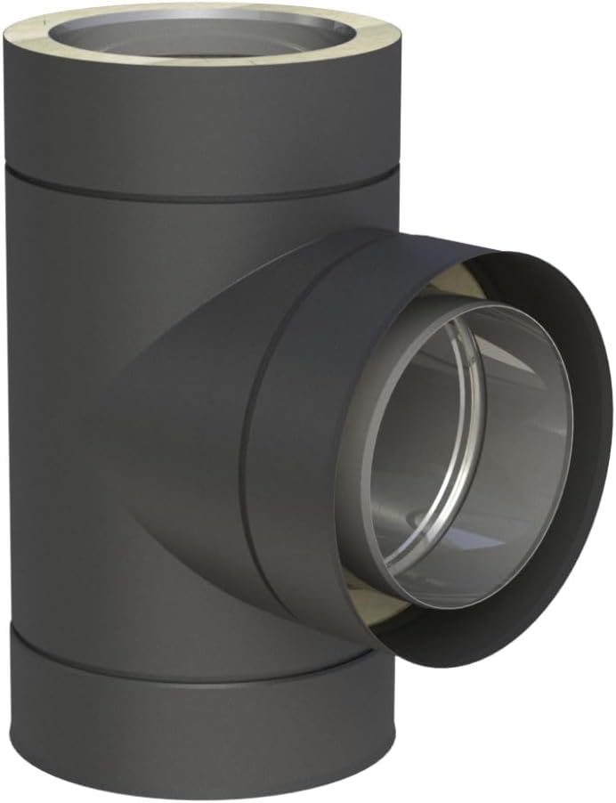 Jeremias DW-Black 200mm T-Stück 87 Grad doppelwandige Abgasanlage Edelstahl schwarz matt für Öl Gas Festbrennstoffe