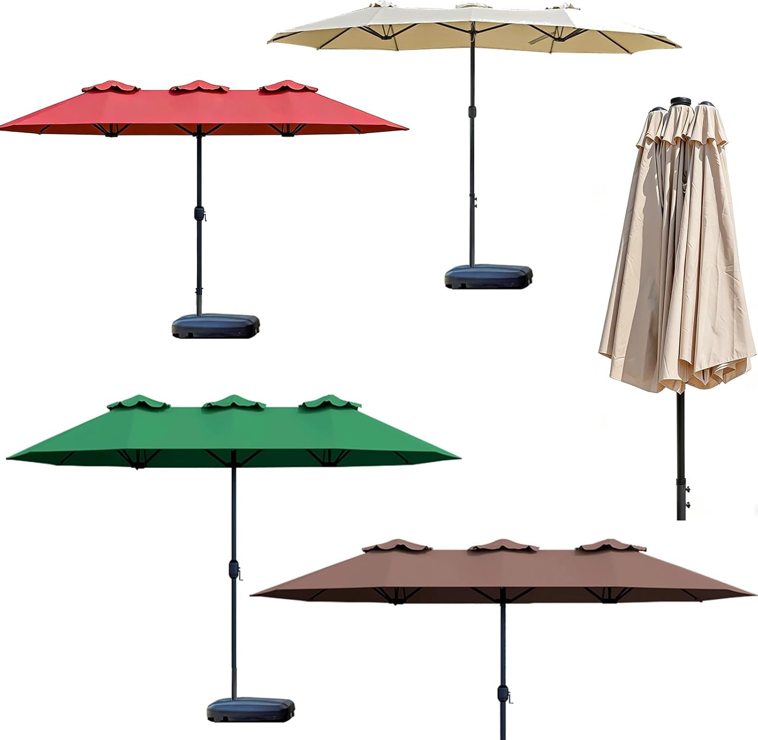 Outdoor-Tischmarkt-Hofschirm, 15 Fuß Terrassenschirm Mit Sockel, Faltbares Und Tragbares Design, for Pool, Garten, Hinterhof(Beige,Small Base)